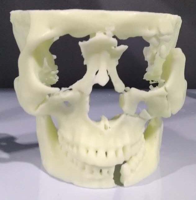 患者由于發(fā)生嚴重的車禍撞擊,導致面部骨骼大面積骨折,需要進行手術修復。使用3D打印技術制作出患者的面部骨骼破損情況,以便于醫(yī)生進行術前規(guī)劃,同時也讓醫(yī)生與患者的溝通更方便。