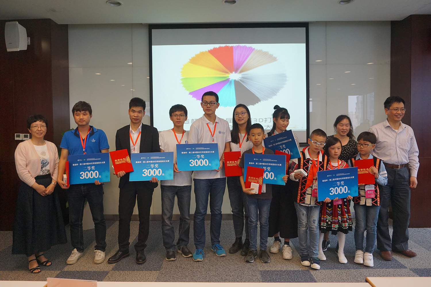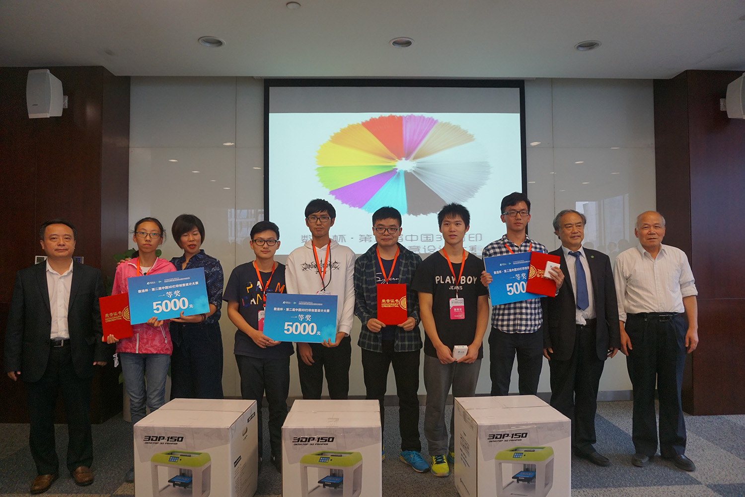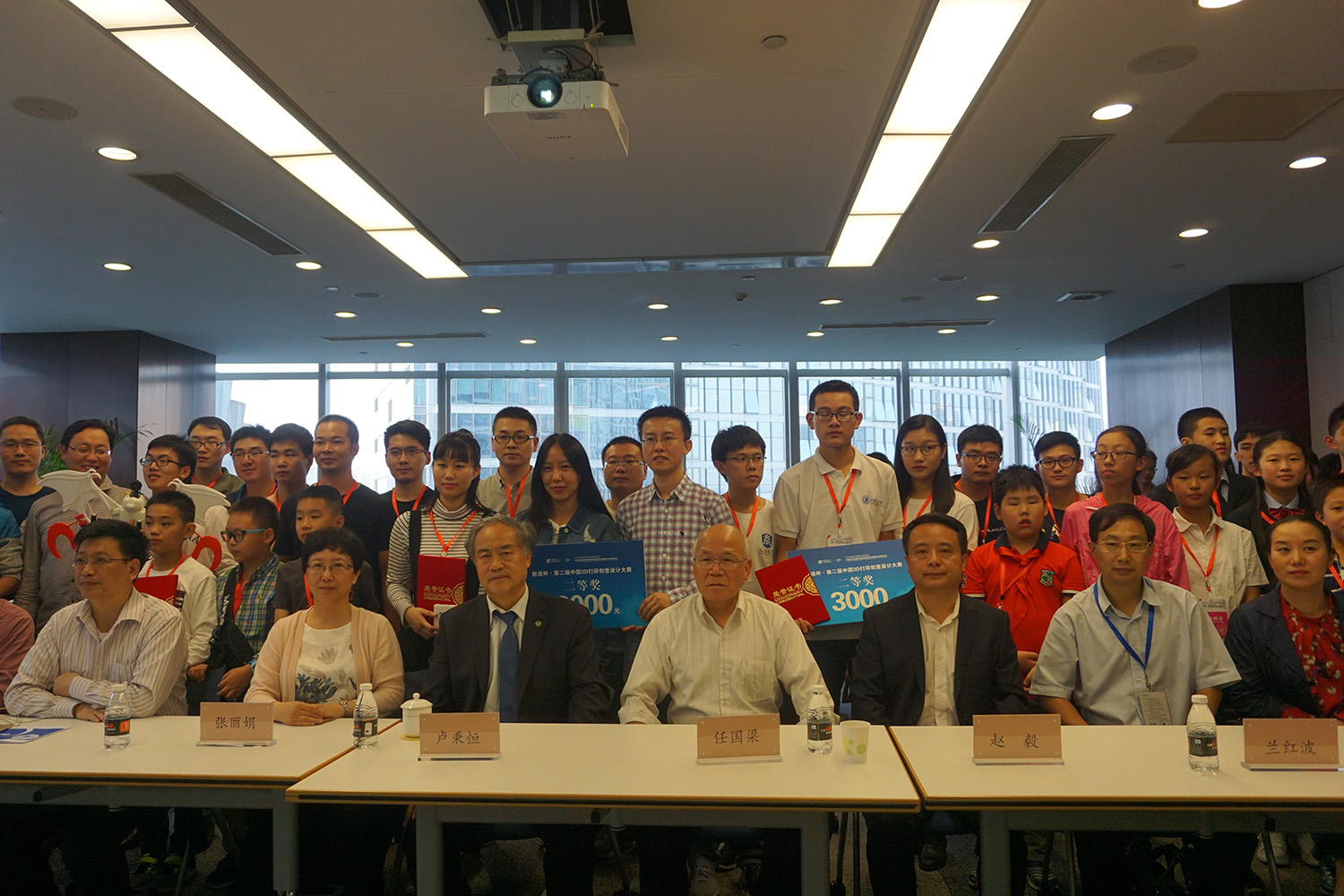 本屆數造杯·全國3D打印創意設計大賽取得了圓滿成功!盧院士攜眾評委與參賽選手合影留念。