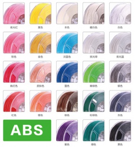 桌面機耗材主要有ABS和PLA,耗材均是直徑1.75mm的卷裝線材,單卷線材重量1kg。兩種材料均有20多種顏色可選擇,包括白色、乳白色、黃色、紅色、黑色、灰色、綠色、橙色等等